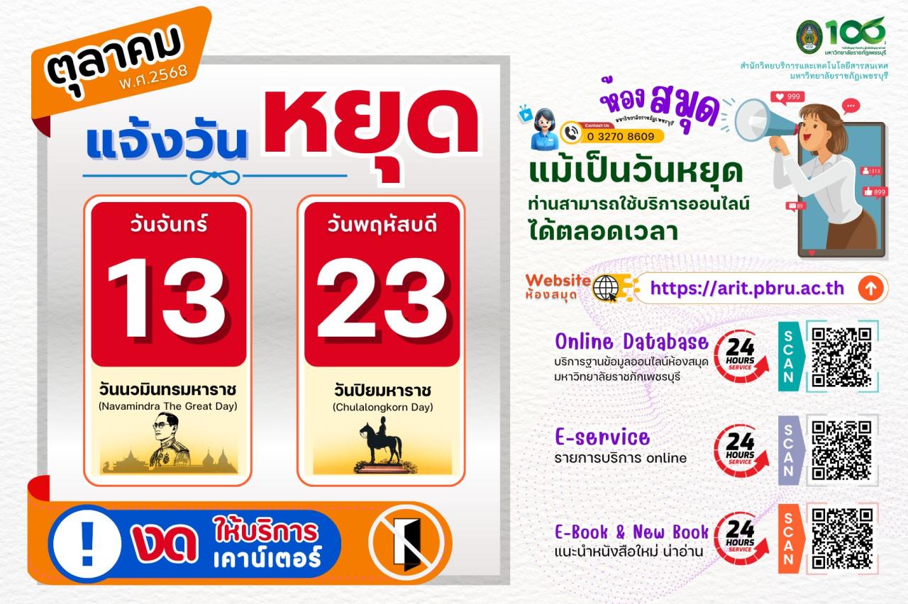 © Copyright 2024 | สำนักวิทยบริการและเทคโนโลยีสารสนเทศ มหาวิทยาลัยราชภัฏเพชรบุรี Site Map | Privacy Policy