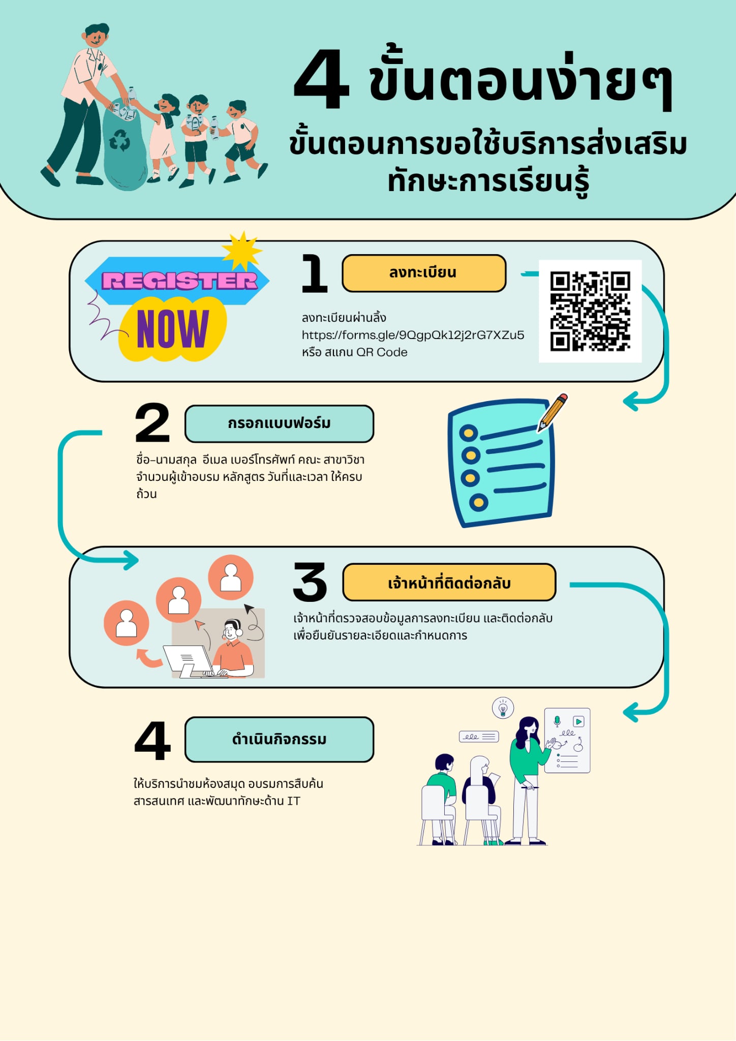 1. กรอกแบบฟอร์มเพื่อแจ้งความประสงค์ขอรับบริการ (ลงทะเบียนก่อน 1 สัปดาห์)