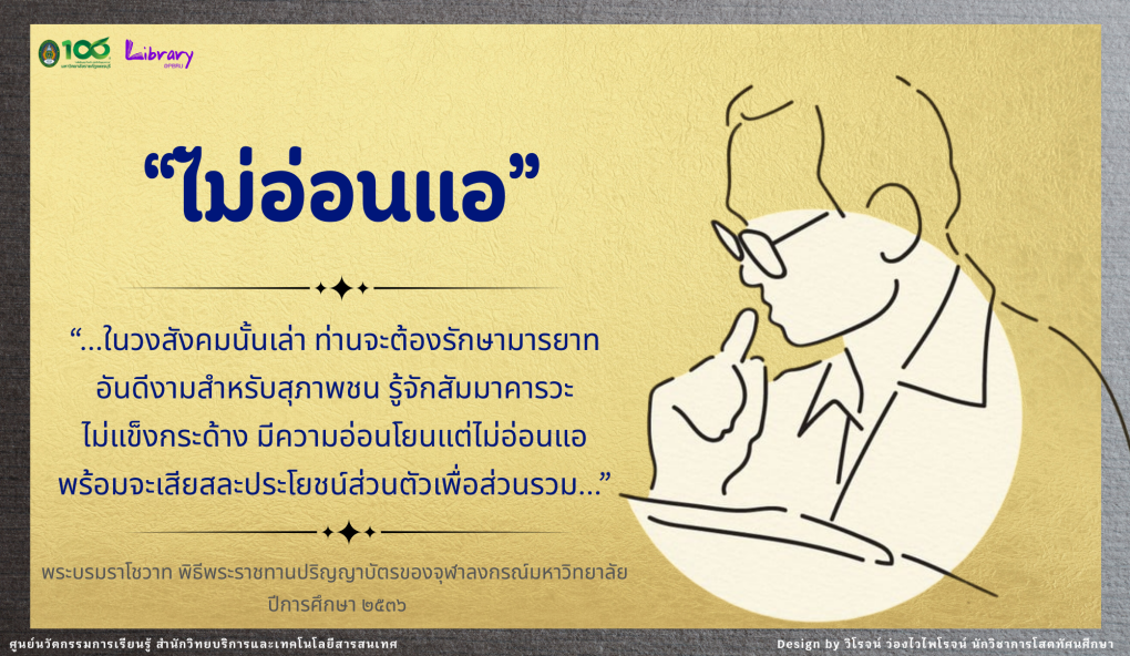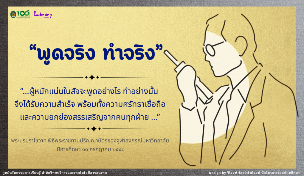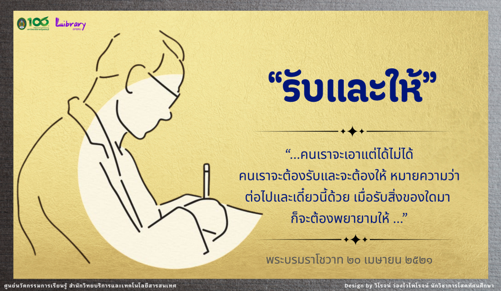 สำนักวิทยบริการและเทคโนโลยีสารสนเทศ ขอรวบรวม ๙ พระบรมราโชวาทและพระราชดำรัสของพระบาทสมเด็จพระปรมินทรมหาภูมิพลอดุลยเดช ในวาระต่าง ๆ ที่พระราชทานแก่ประชาชนคนไทยในวาระต่าง ๆ เพื่อนำมาใช้เป็นข้อคิดในชีวิตและการทำงานต่อไป
