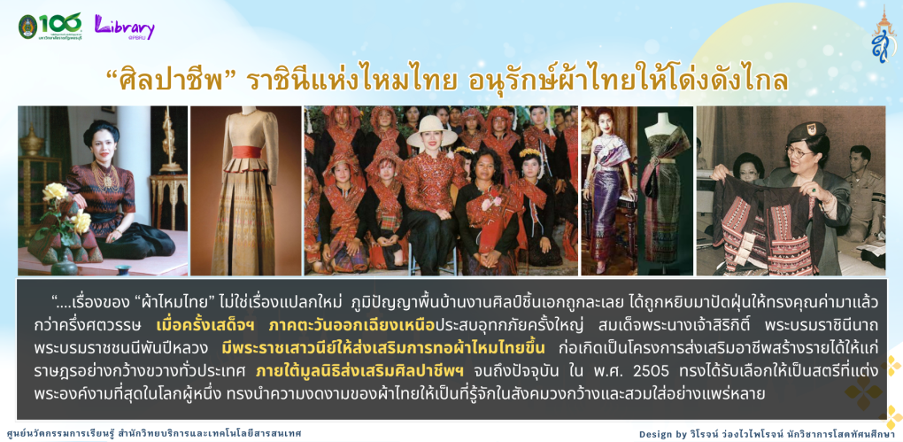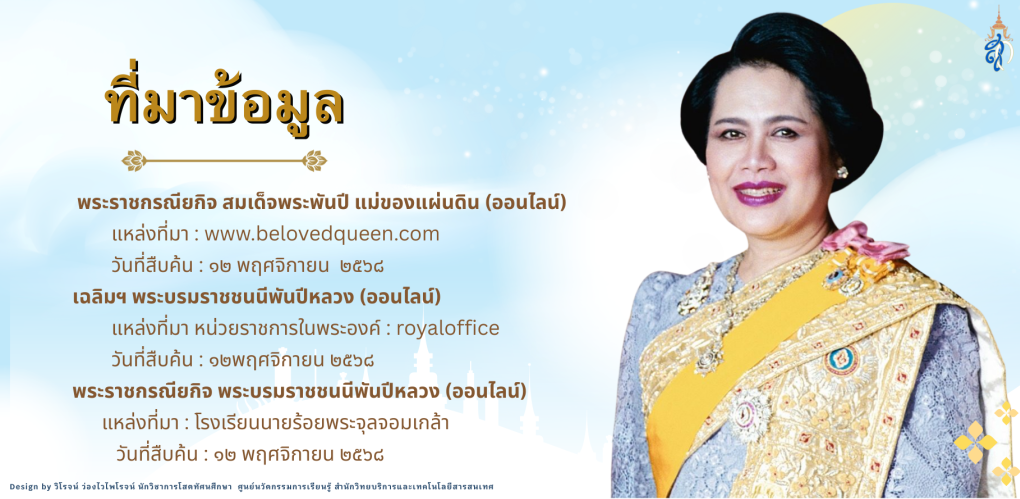 สมเด็จพระนางเจ้าสิริกิติ์ พระบรมราชินีนาถ พระบรมราชชนนีพันปีหลวง ทรงเป็นแบบอย่างแห่ง “พระราชจริยาแห่งความรัก ความเมตตา และความเสียสละ” เพื่อปวงชนชาวไทยทั่วทุกภูมิภาค พระองค์ทรงอุทิศพระวรกายและพระราชหฤทัยในการอนุรักษ์ศิลปวัฒนธรรมไทย ฟื้นฟูภูมิปัญญาท้องถิ่น และส่งเสริมอาชีพให้ประชาชนมีรายได้และความมั่นคงในชีวิต