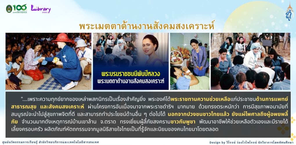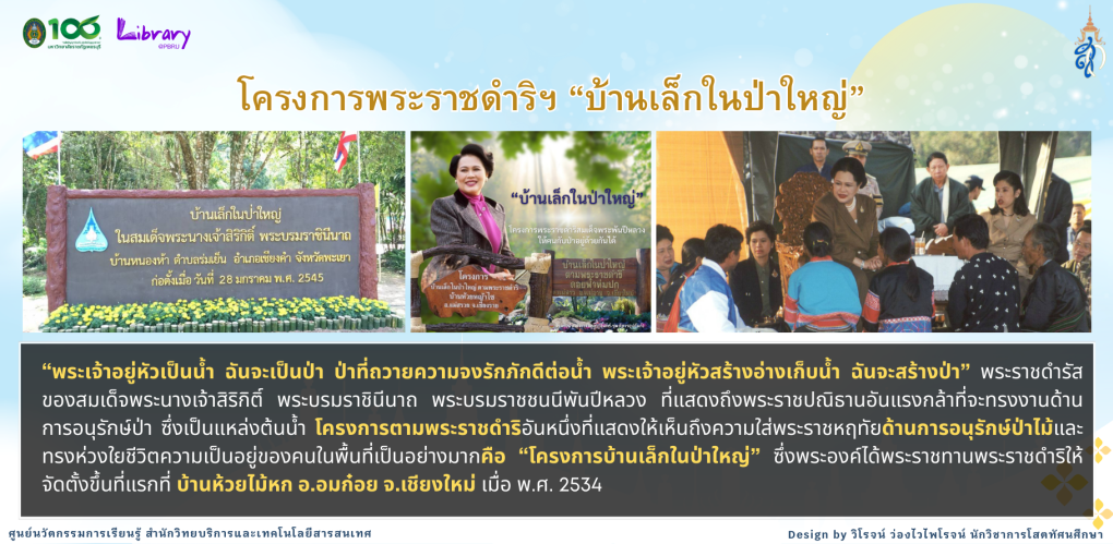 ด้วยพระปรีชาสามารถและพระเมตตาธรรม พระองค์ทรงวางรากฐานแห่งการพัฒนาอย่างยั่งยืน ผ่านโครงการพระราชดำริต่าง ๆ ที่คำนึงถึง “คน ดิน น้ำ ป่า และวัฒนธรรม” ให้ดำรงอยู่อย่างกลมกลืนและยั่งยืน