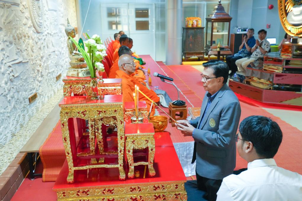 วันที่ 26 กันยายน 2568 ผู้บริหารและบุคลากรสำนักวิทยบริการฯ จัดกิจกรรมทำบุญสำนักวิทยบริการฯ กิจกรรมในงานประกอบด้วยทำบุญสำนักวิทยบริการฯและเลี้ยงพระเพล โดยได้รับเกียรติจากผู้ช่วยศาสตราจารย์ ดร.เสนาะ กลิ่นงาม ที่ปรึกษาอธิการบดีมหาวิทยาลัยราชภัฏเพชรบุรี เป็นประธานในพิธี และผู้บริหารมหาวิทยาลัยราชภัฏเพชรบุรี ให้เกียรติร่วมงานในครั้งนี้ เพื่อความเป็นสิริมงคลแก่บุคลากรและความสามัคคีในองค์กรที่จะเป็นแรงบันดาลใจให้บุคลากรมุ่งมั่นทำงานเพื่อประโยชน์ขององค์กรต่อไป