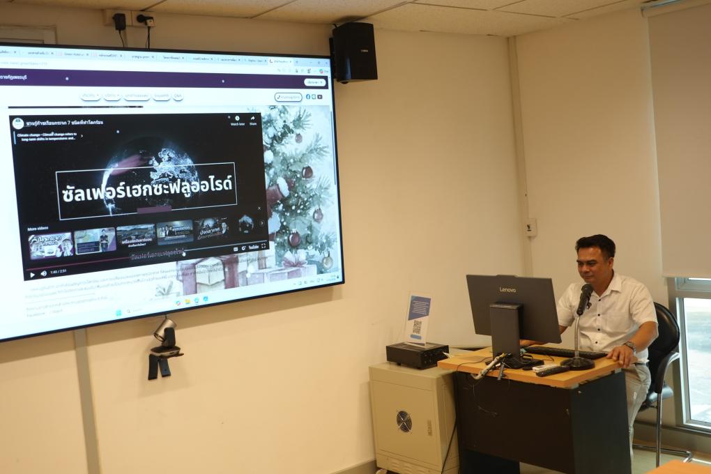 2) การบรรยายเกี่ยวกับการจัดการไฟฟ้า น้ำ ขยะและก๊าซเรือนกระจกของห้องสมุด