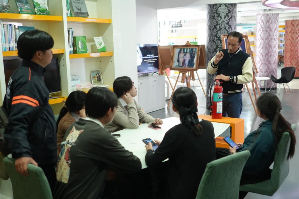 บรรยายโดยนายทวี นวมนิ่มและนายพีรวัฒน์ เพ่งผุดผ่อง บรรณารักษ์และคณะกรรมการดำเนินงานสำนักงานสีเขียวของสำนักวิยบริการฯ เพื่อเป็นการฝึกปฏิบัติและเสริมสร้างทักษะการเรียนรู้ในสถานการณ์จริงให้กับนักศึกษา จากนั้นยังได้มีการเยี่ยมชมสถานที่ภายในห้องสมุดด้วย