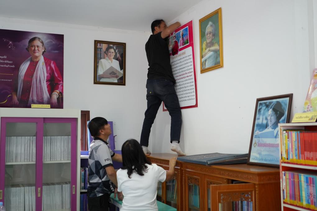1) ด้านบรรยากาศ สภาพแวดล้อม โดยจัดแบ่งมุมต่างๆ เช่น มุมความรู้สมเด็จพระเทพรัตนราชสุดาฯ มุมหนงสือสำหรับเด็กและเยาวชน มุมหนังสืออ้างอิง มุมหนังสือนิยาย ฯ พร้อมกับจัดอุปกรณ์เข้ามุมให้เกิดความเรียบร้อย เช็คสภาพชั้นวาง/โต๊ะ ทำความสะอาดห้องและอุปกรณ์ ตกแต่งมุมต่างๆ และทำป้ายหมวดหนังสือ/ป้ายชั้น/ป้ายอื่นๆ