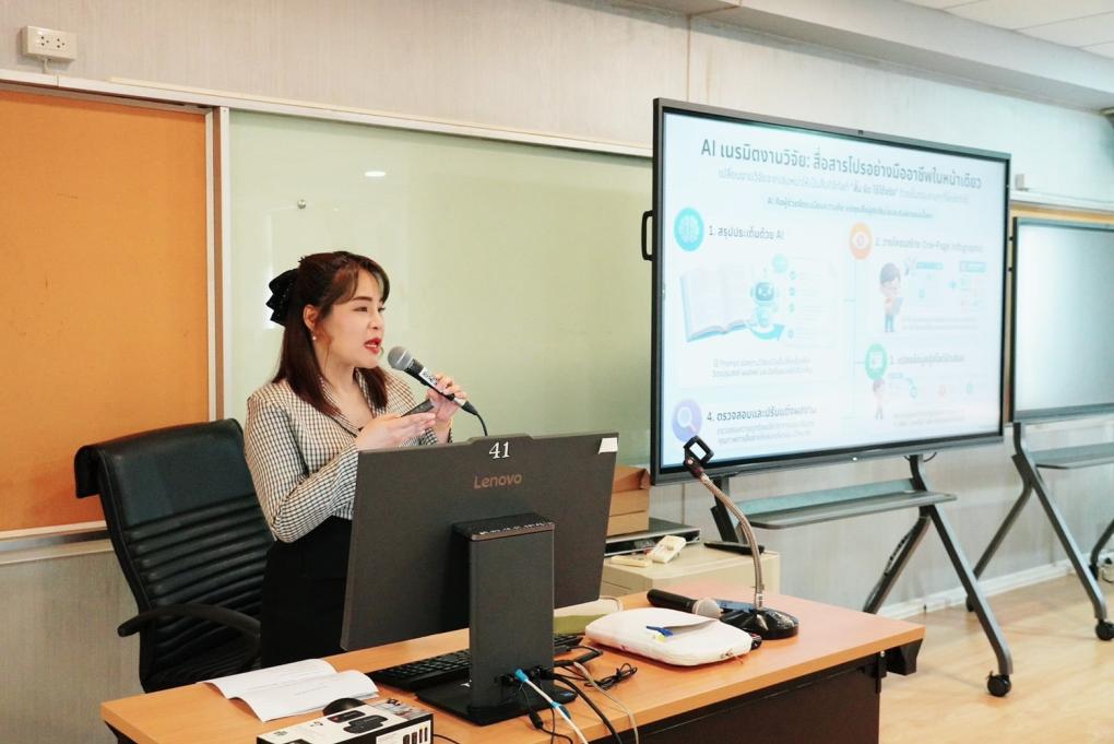 เมื่อวันที่ 11 กุมภาพันธ์ 2569 สำนักวิทยบริการและเทคโนโลยีสารสนเทศ มหาวิทยาลัยราชภัฏเพชรบุรี จัดอบรมเชิงปฏิบัติการหลักสูตร “AI เพื่อการสื่อสารงานวิจัยและการนำเสนออย่างมืออาชีพ (AI for Research Communication and Professional Presentation)” ให้แก่นักศึกษาสาขาวิทยาศาสตร์และเทคโนโลยีการอาหาร ชั้นปีที่ 2–3 คณะเทคโนโลยีการเกษตร จำนวน 22 คน ณ ห้องปฏิบัติการคอมพิวเตอร์ ชั้น 6 อาคารบรรณราชนครินทร์ โดยมี นางสาวสิริรัตน์ เดชเพชร นักวิชาการศึกษา และ นายวิโรจน์ ว่องไวไพโรจน์ นักวิชาการโสตทัศนศึกษา เป็นวิทยากรถ่ายทอดความรู้